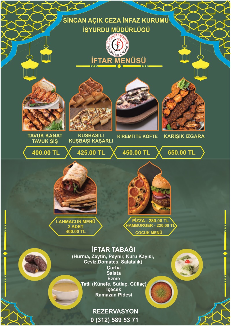 SİNCAN AÇIK CEZA İNFAZ KURUMU KAFETERYA İFTAR MENÜSÜ